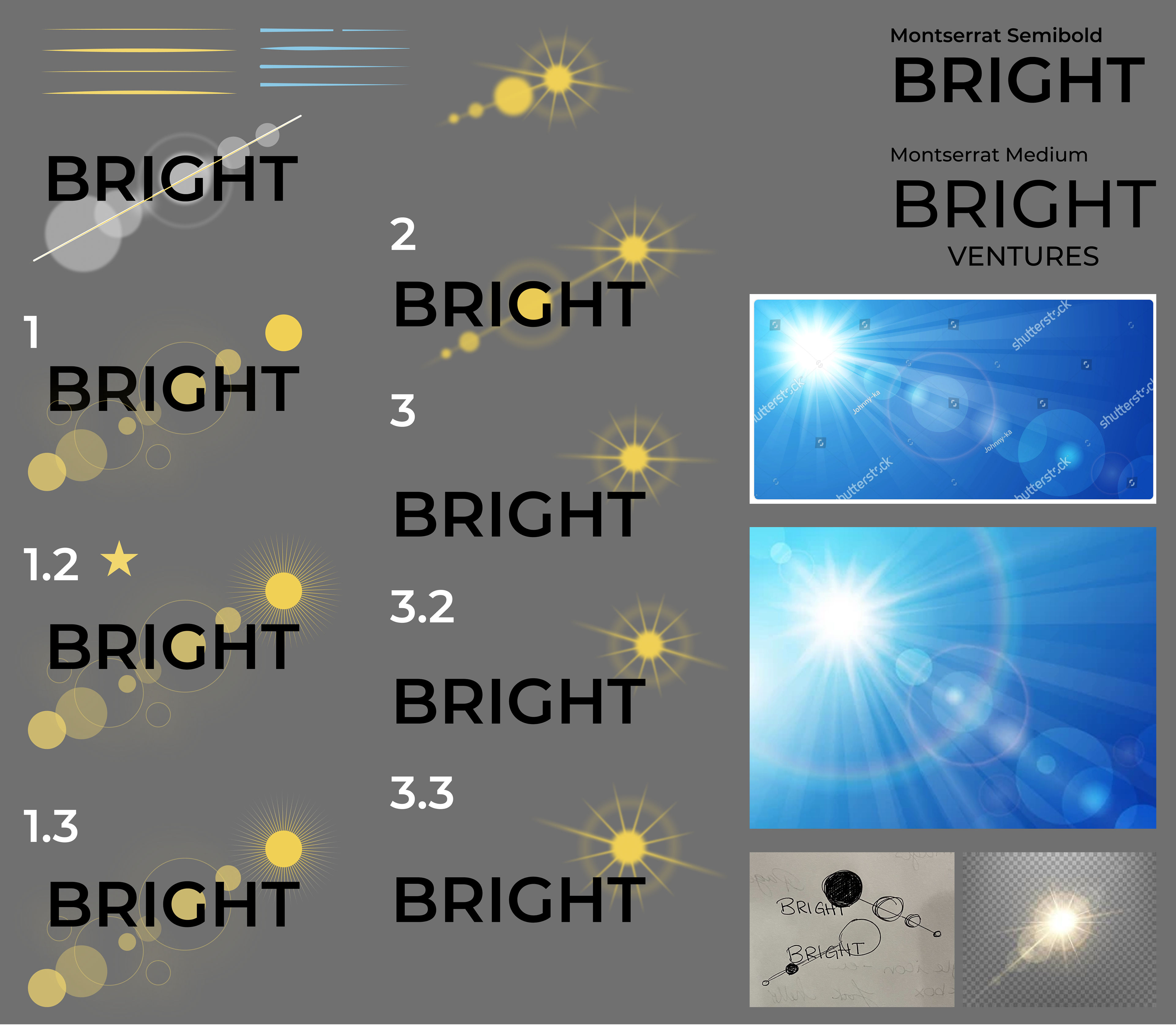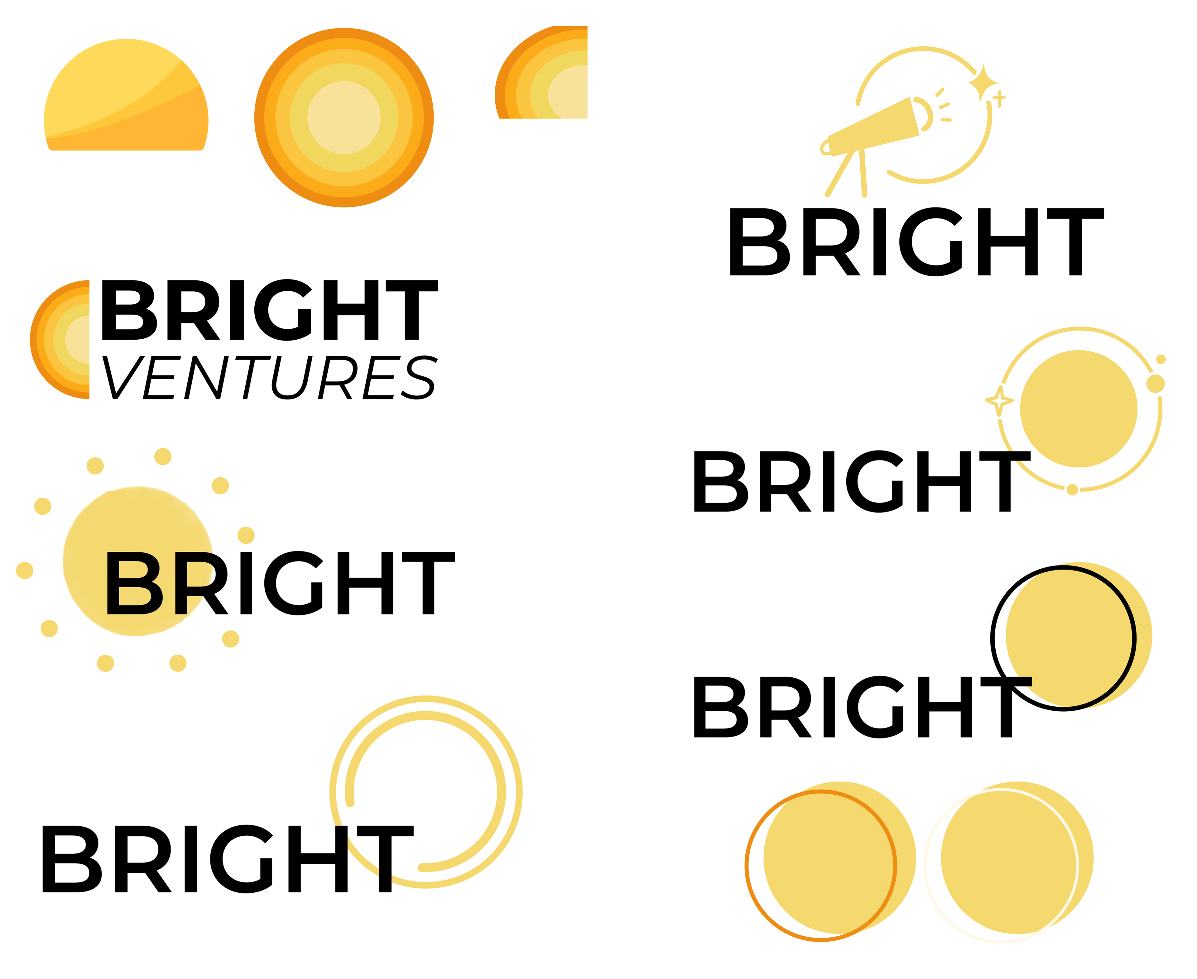 The previous logo, as shown above, features a simple logotype lockup with the words "Bright Ventures" overlayed onto a yellow circle alluding to the sun. While the client enjoyed this design, they wished to "spiffy" it up a bit.