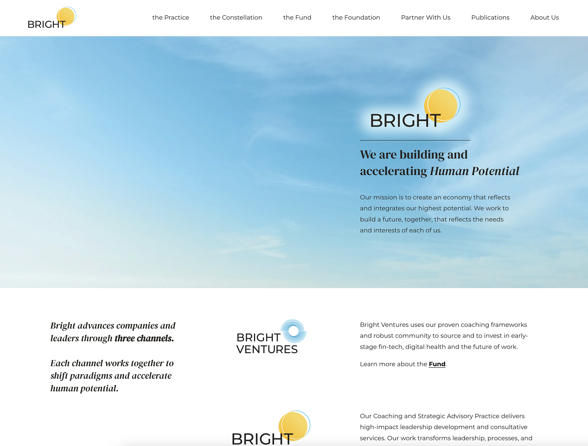 The project began as a brand overhaul for Bright Ventures and it's subsidiaries: The Constellation, Asteri, The Bright Ventures Foundation, and Bright Advisors. Bright Ventures first hired on a different designer to tackle this project, but unfortunately the they had to step aside due to personal reasons and could not complete the project as planned.